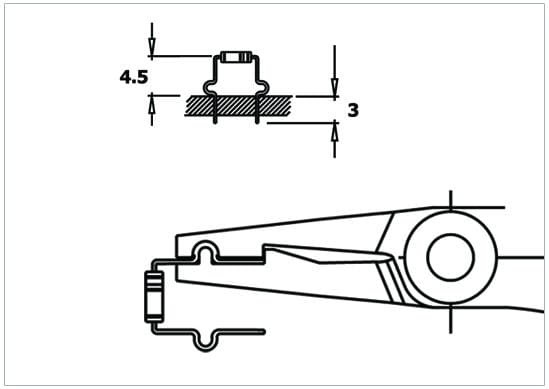 Pliers that form the component leads in a C-shape and cut off the residual part. Residual lead length 3 mm.